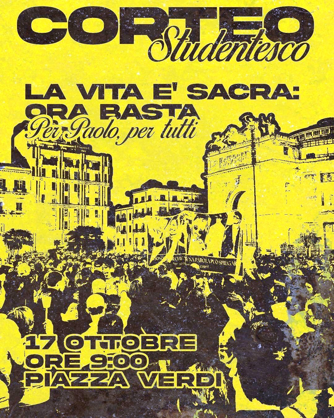 La mobilitazione di Palermo contro la violenza di strada non si ferma. All’indomani del funerale di Paolo Taormina, la mobilitazione continua. Alle tante manifestazioni di dolore e solidarietà che in questi giorni stanno attraversando Palermo, si aggiunge anche la voce degli studenti. Oggi, venerdì 17 ottobre, alle 9,00, partirà da Piazza Verdi un corteo studentesco organizzato dagli studenti delle scuole e dell’università di Palermo per ricordare Paolo Taormina, il giovane…